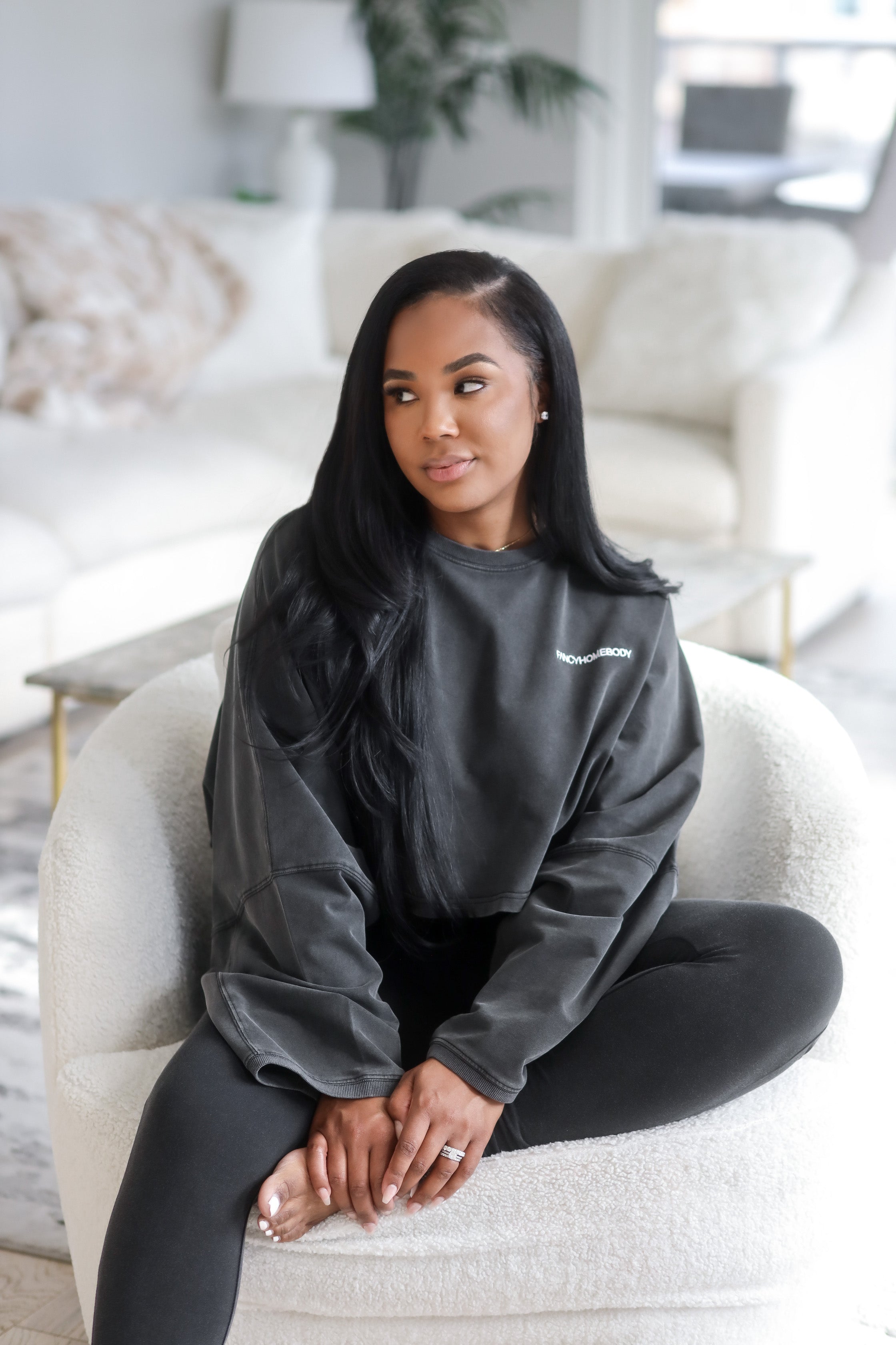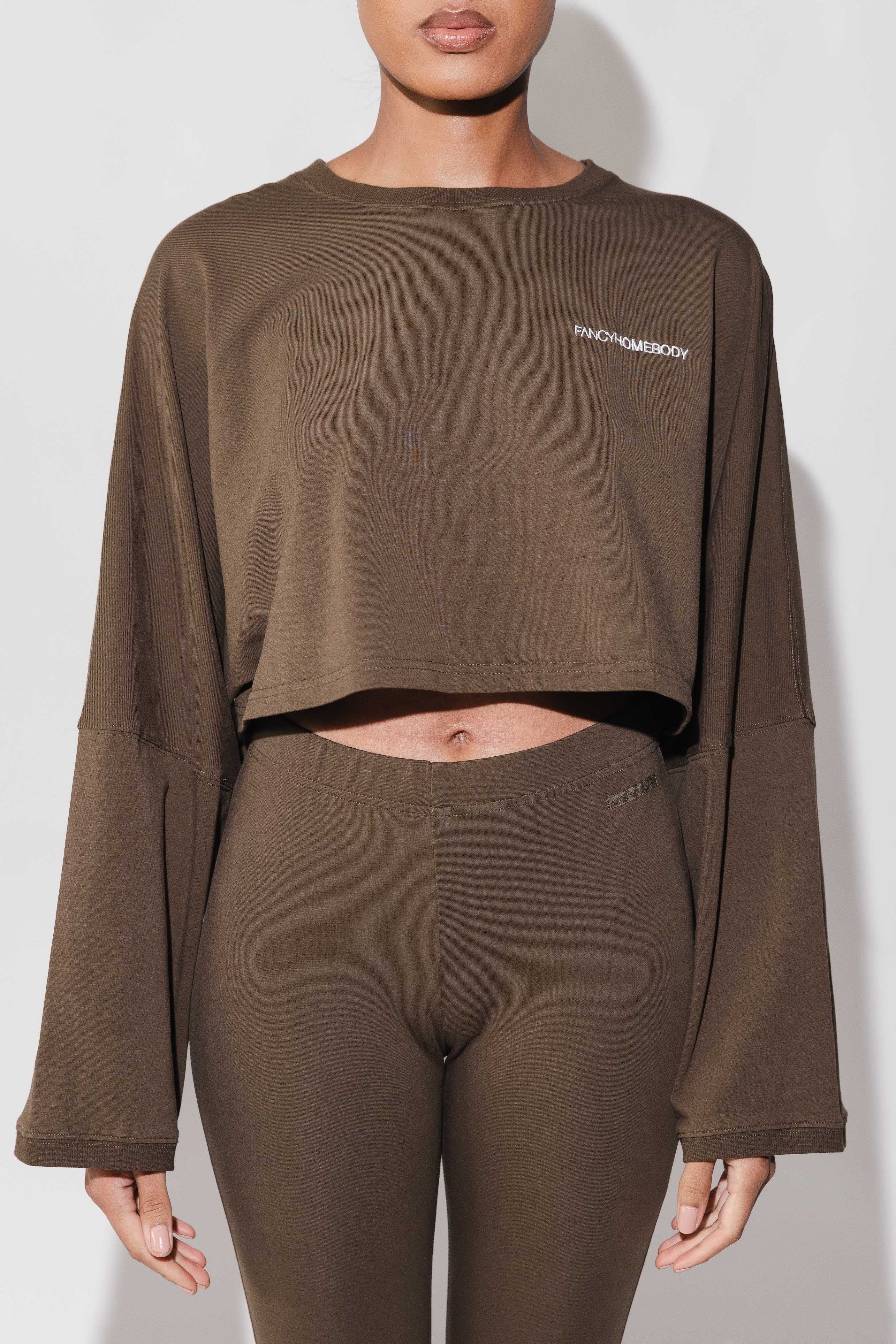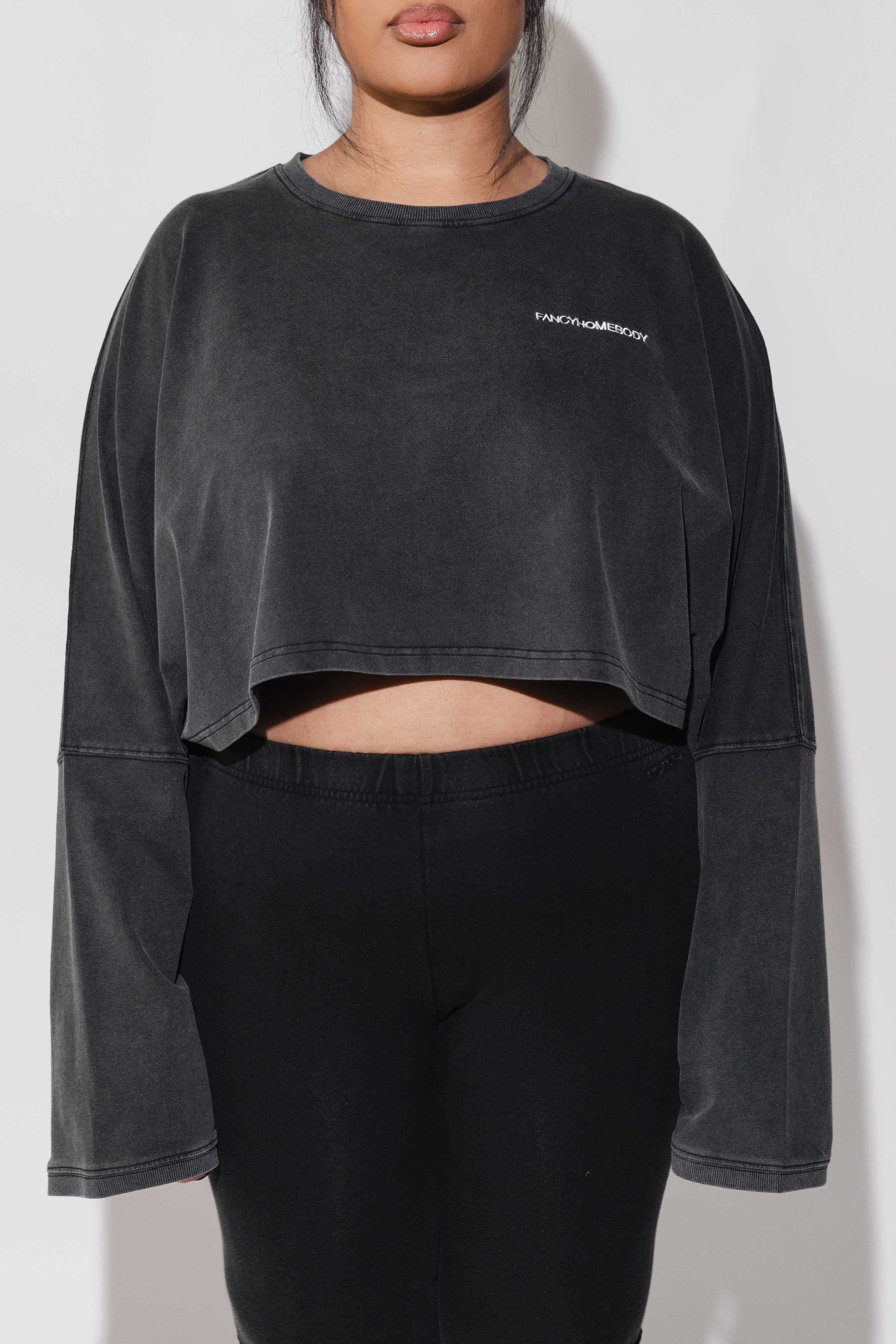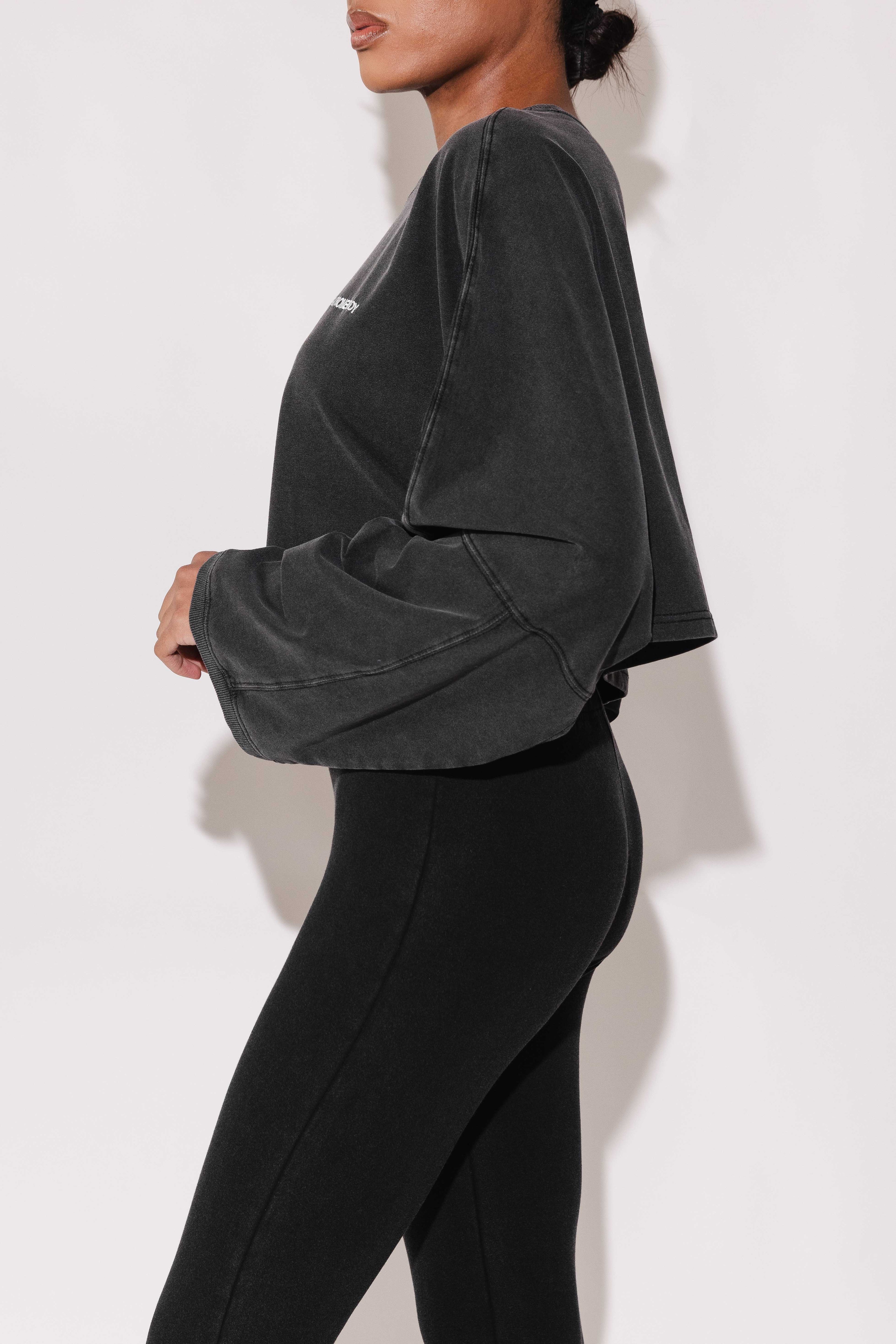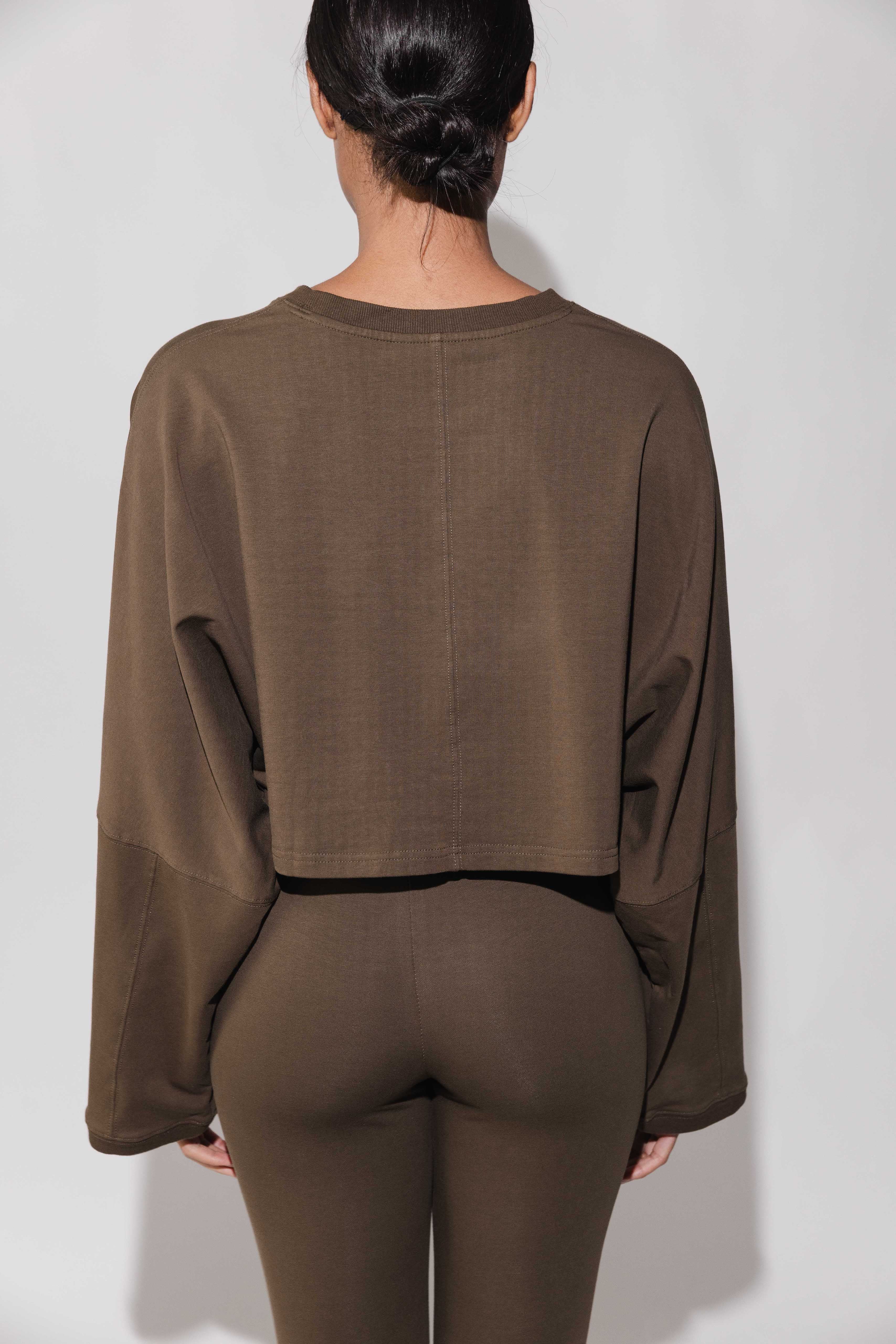 Our Jersey Essential Slouch Crop Top, made from our stretchy, breathable cotton features a crew neckline, long sleeves, dropped shoulders and a cropped hemline with a very relaxed fit.