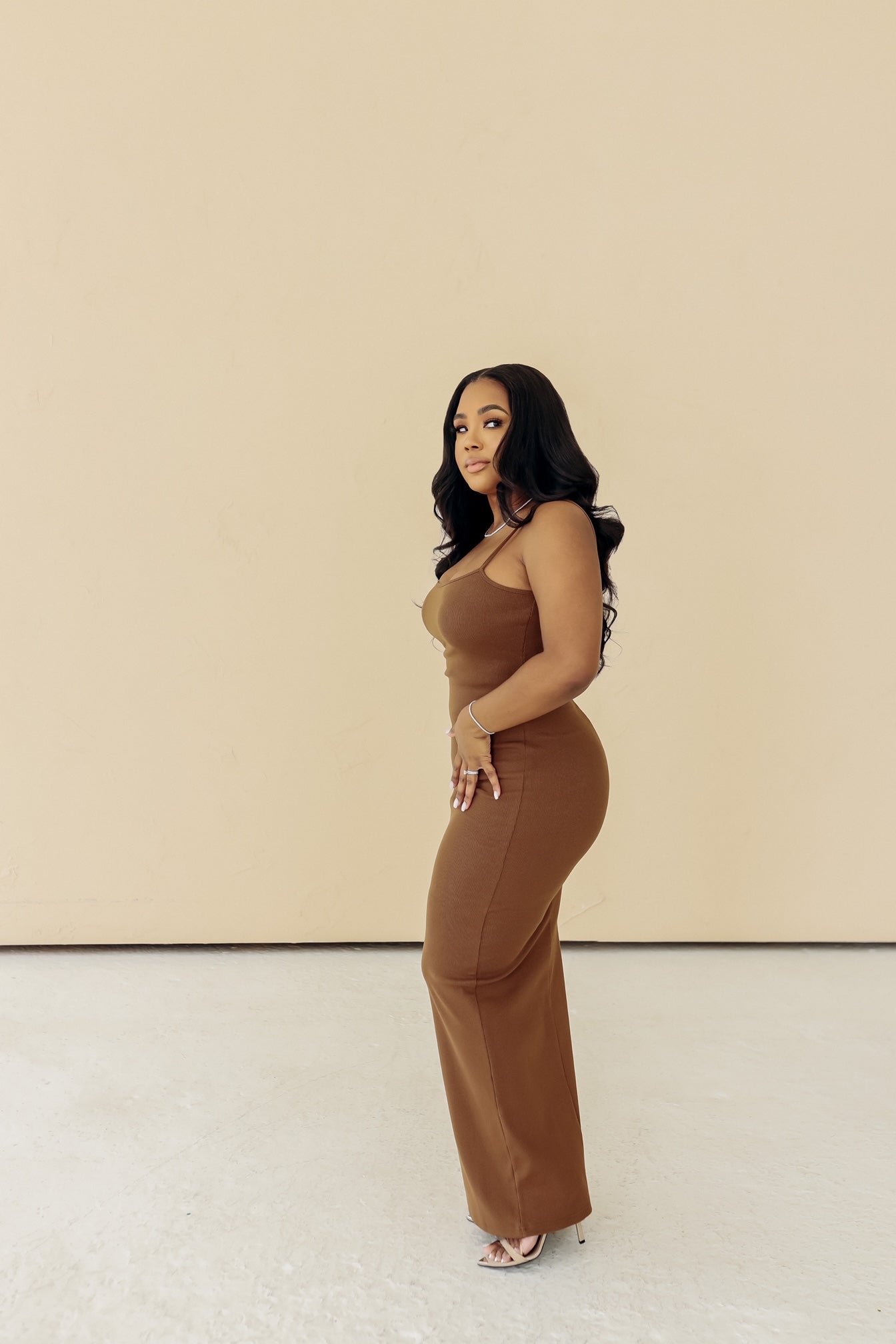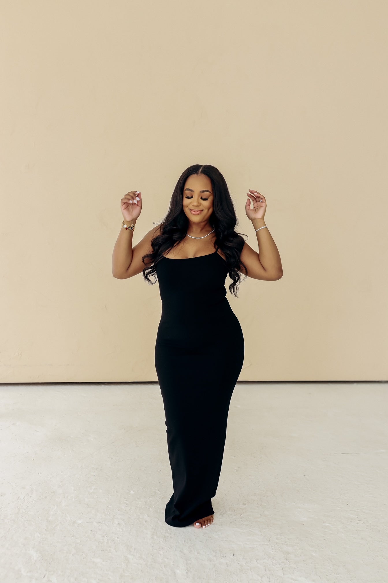 Made from our soft and stretchy Signature Ribbed fabric, this super comfortable and classic design can easily take you from lounging at home to out on the town. Features flattering straight neckline, spaghetti straps, maxi length, an ultra flattering- body hugging fit, with a slight snatch at the waist.