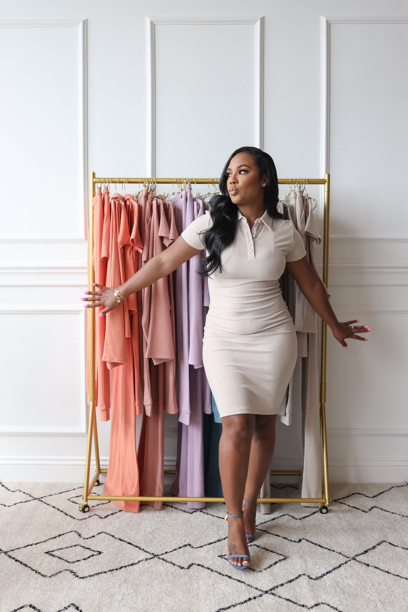 This midi length Polo Dress features a is a classic-chic design that will never go out of style. Made from the softest, ultra luxe ribbed knit blend, this collared dress features a slim fit design, short sleeves and fabric covered buttons.