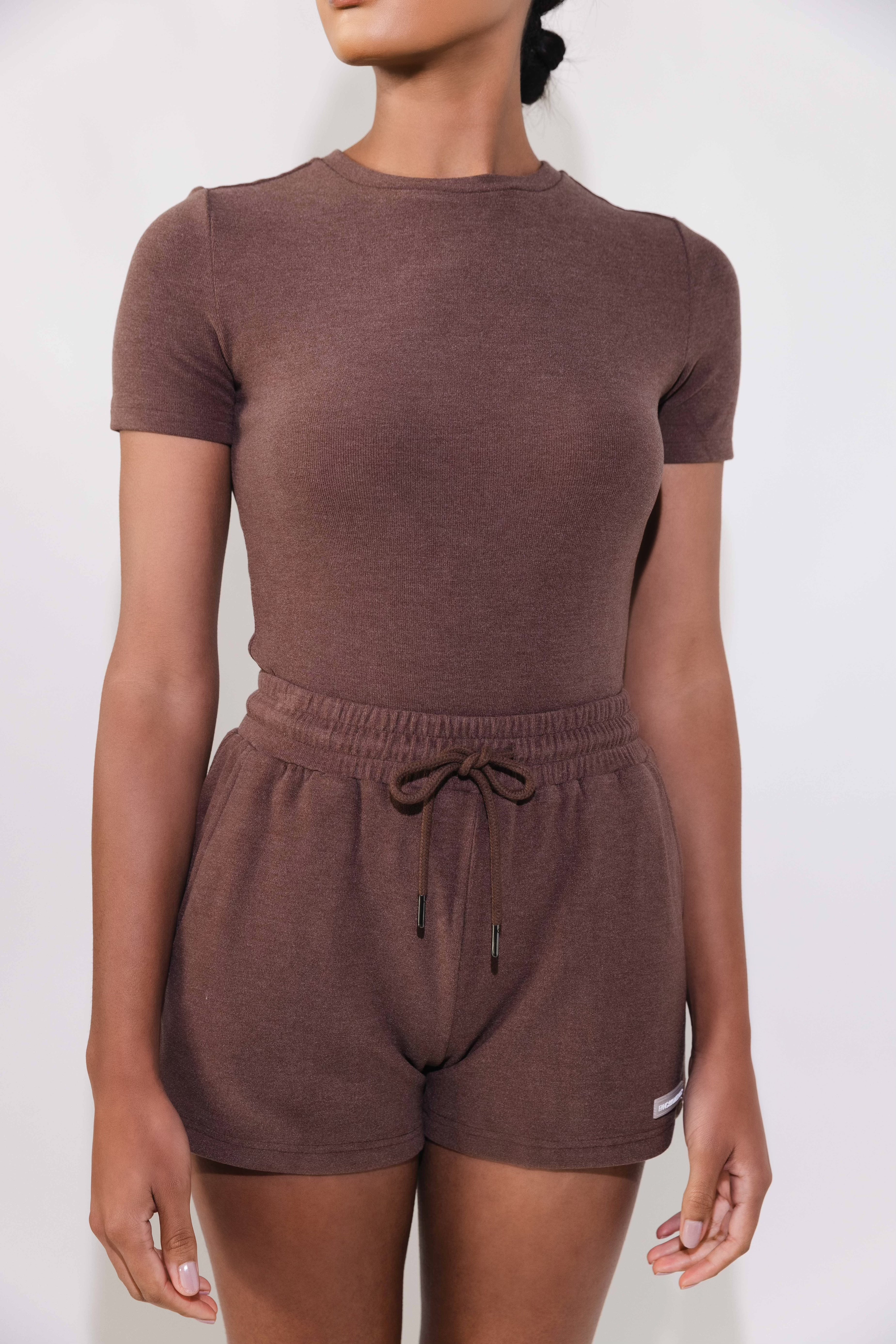 Made from the softest, ultra luxe ribbed knit blend, our Essential Smooth shorts feature a high waistline design, two side pockets, a drawstring closure and our simplistic rubber logo patch.