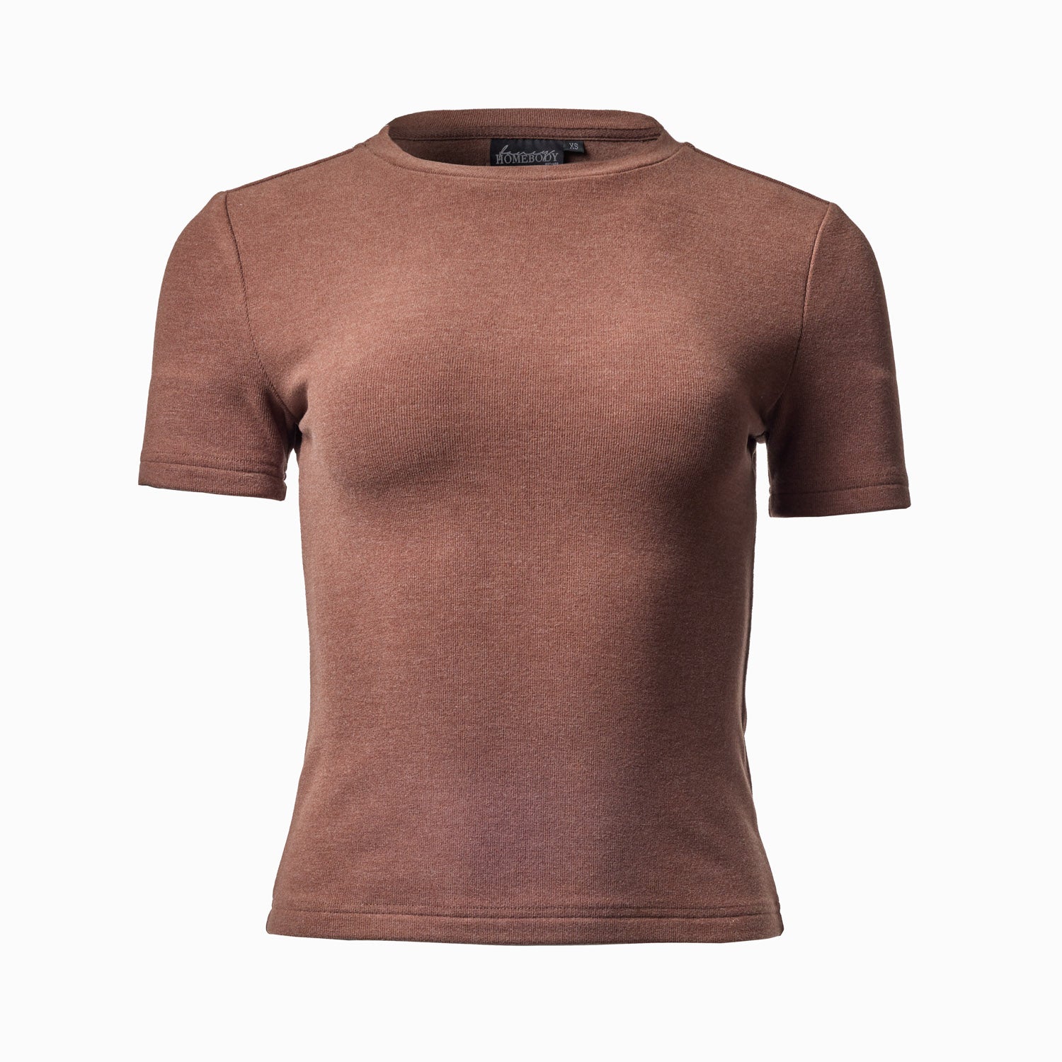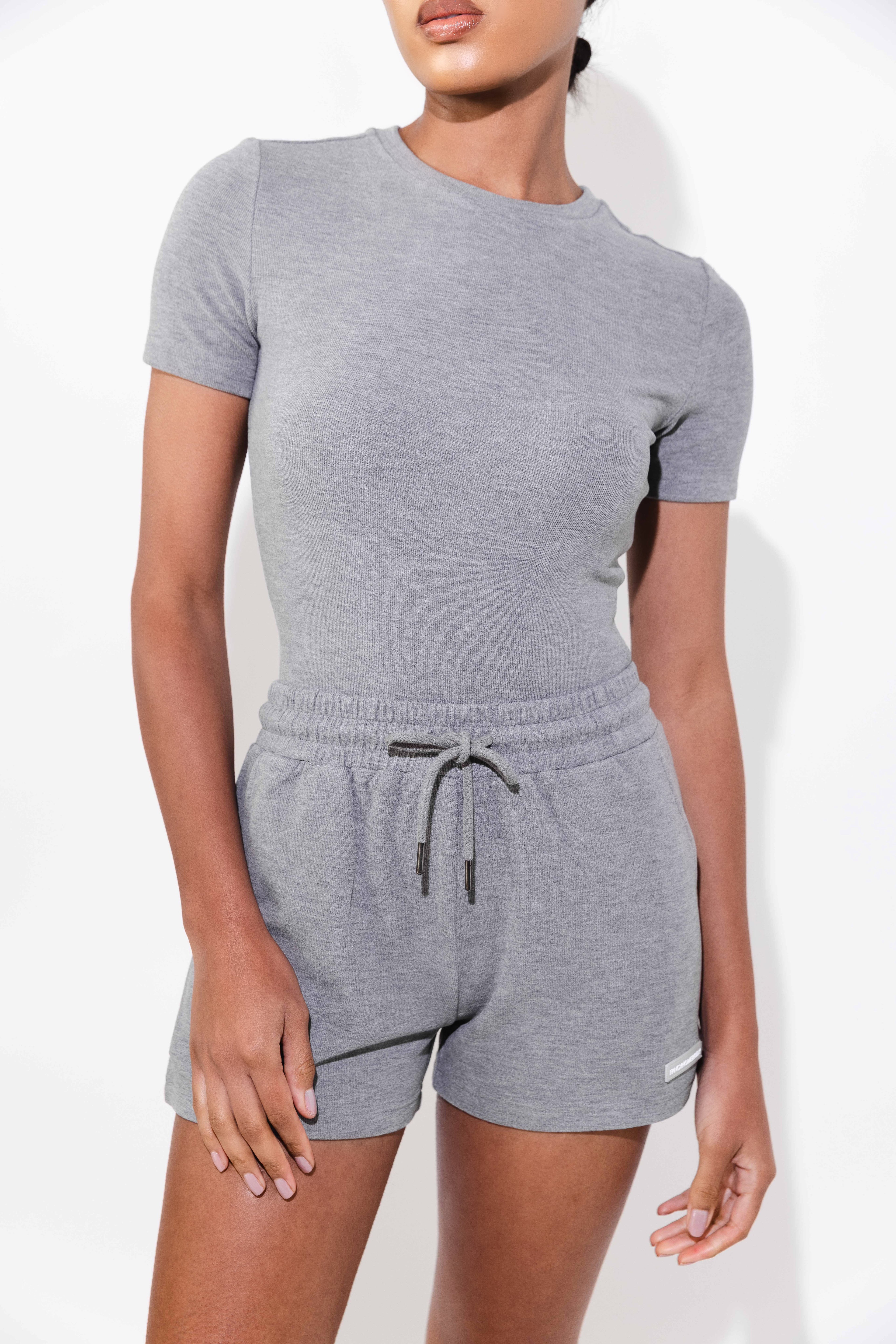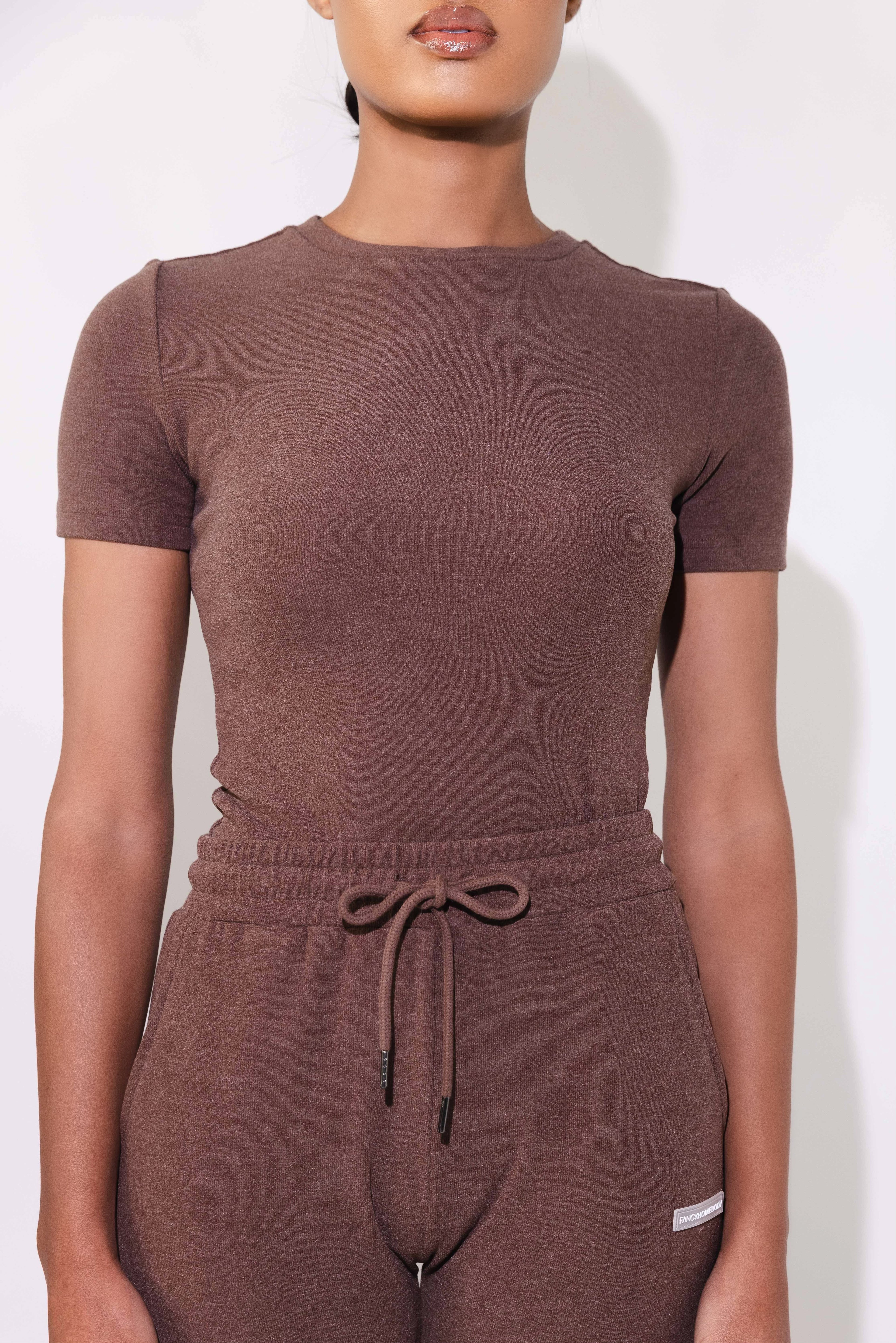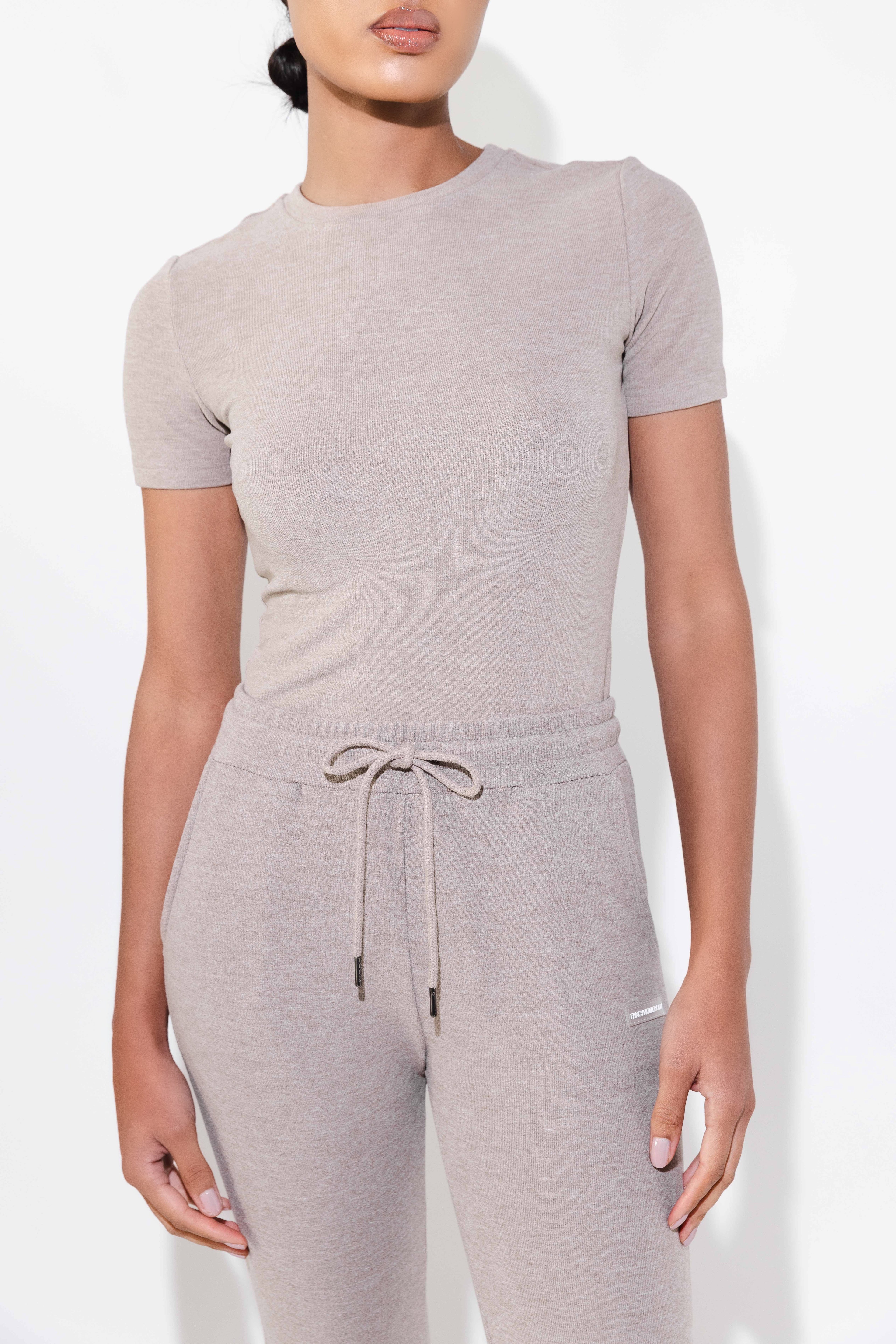 Essential Smooth Crew tee is destined to be a wardrobe staple! This full length, fitted tee is made from the softest, ultra luxe ribbed knit blend and features our simplistic rubber logo patch on back neckline.