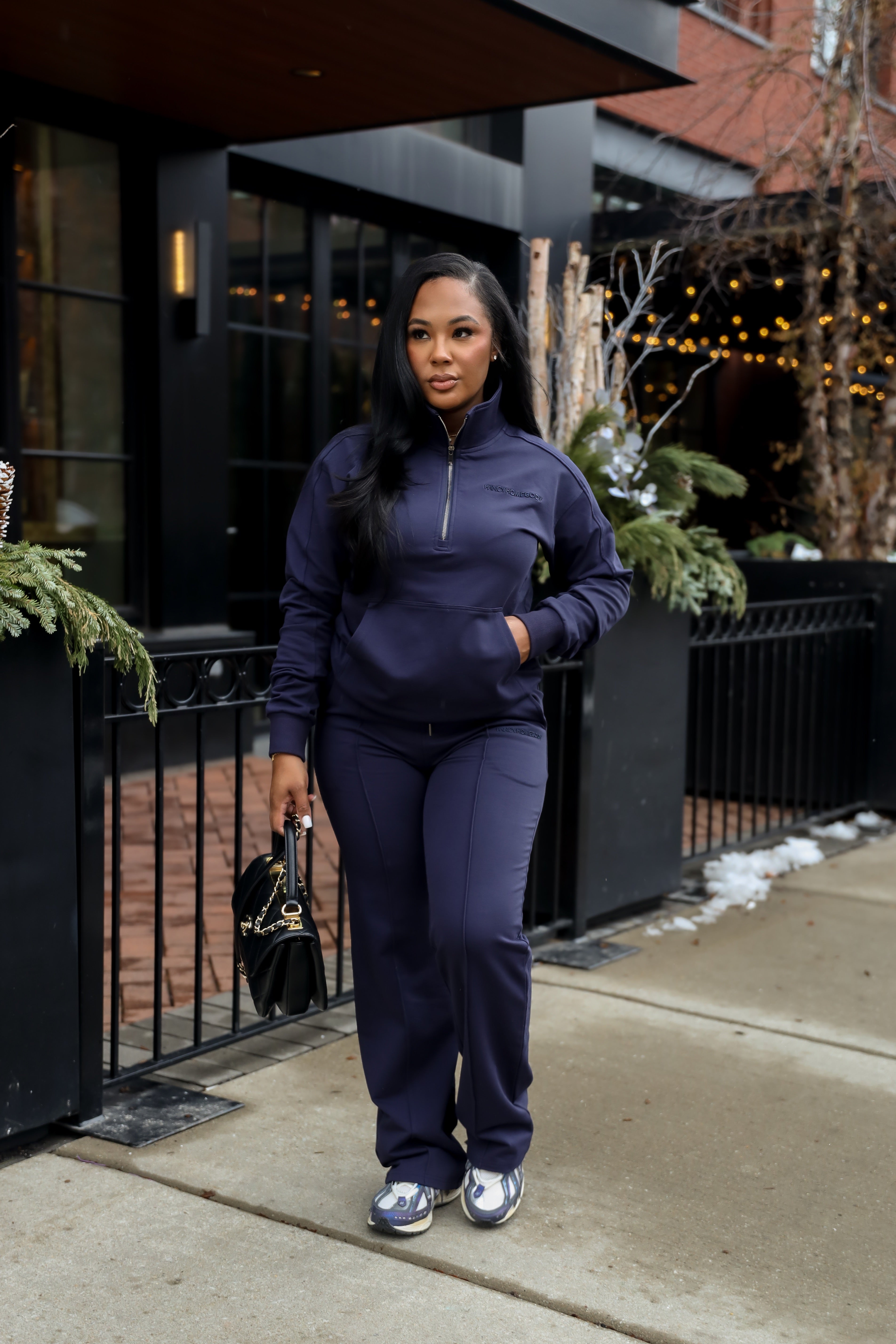 Our Essential Stretch Half-Zip Tunic Set delivers the perfect blend of comfort, polish, and ease. The set features a relaxed-fit half-zip tunic with a wide collar and clean silhouette, paired with our best-selling high-waist wide-leg pant.