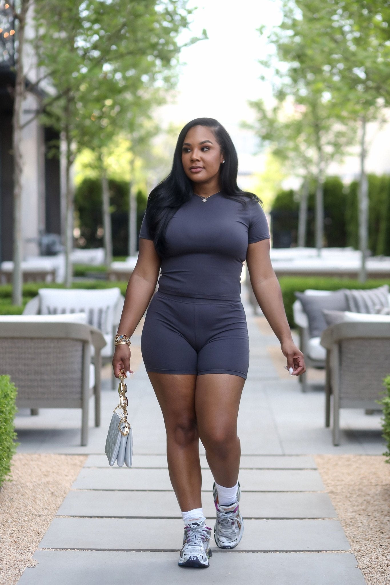 Our Jersey Essential Short, made from our stretchy, breathable cotton features a high rise fit, stretchy waistband with an ultra soft feel. Short hits at mid-thigh.