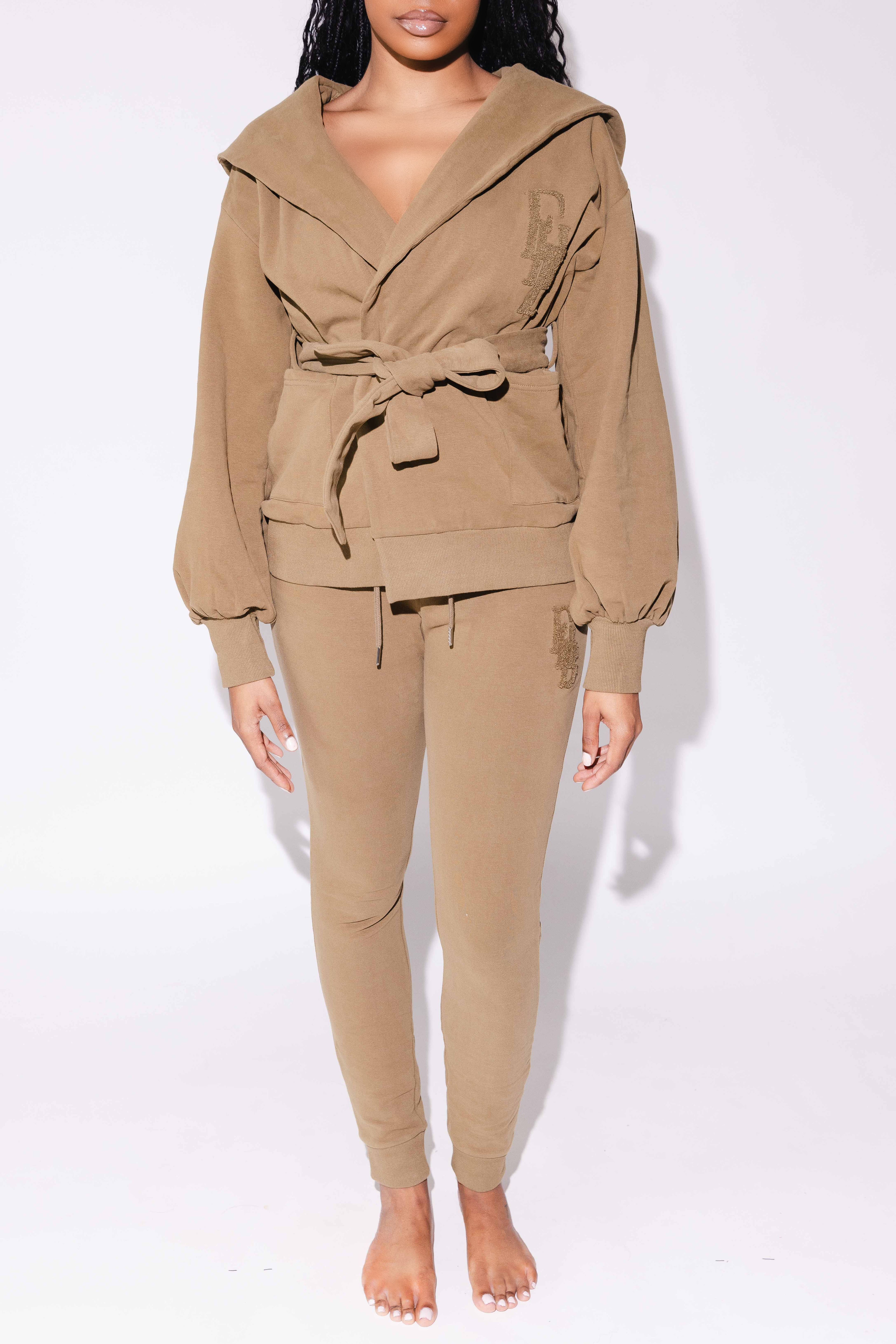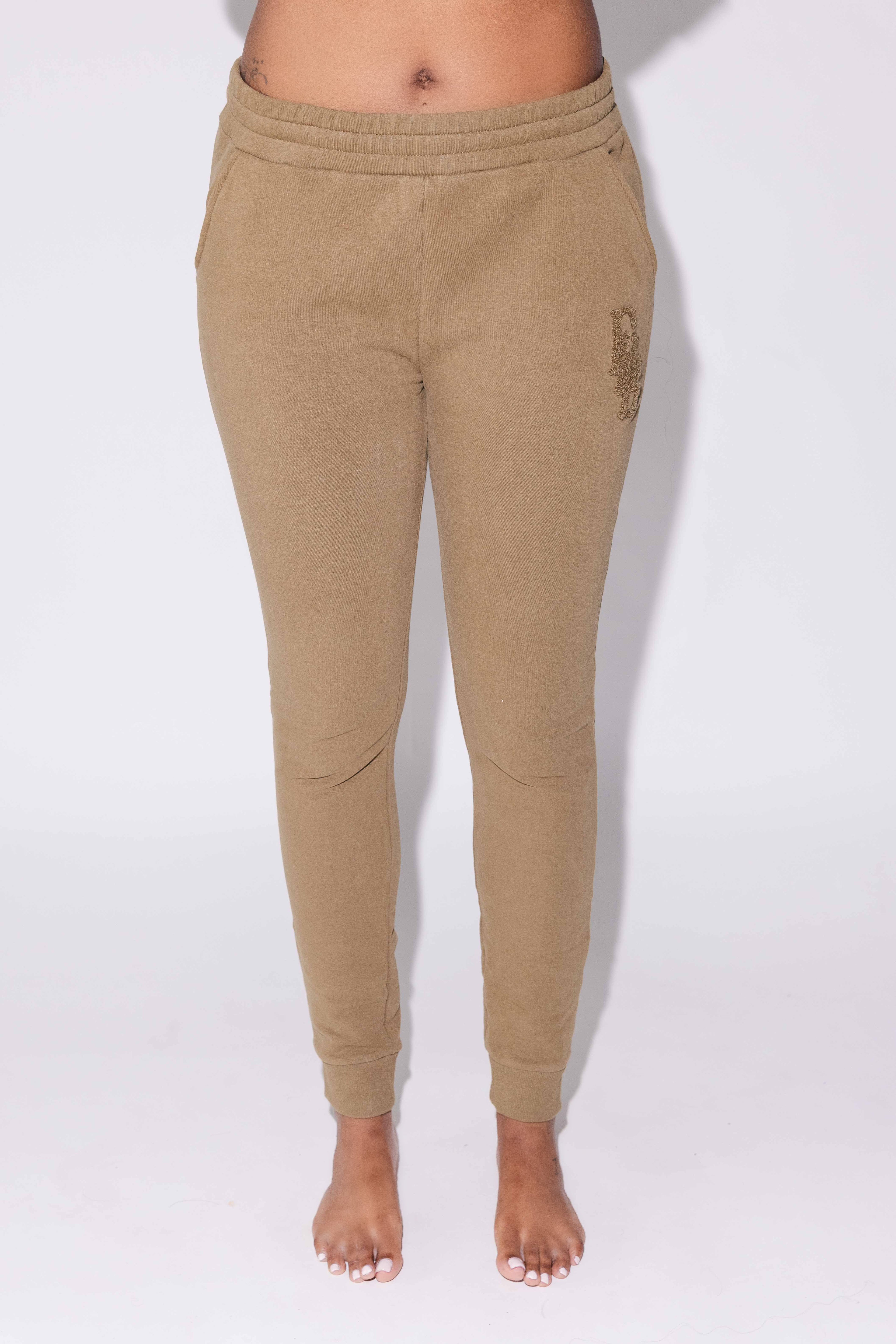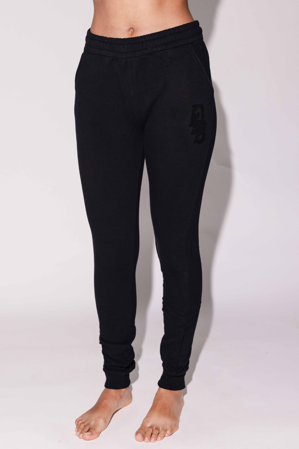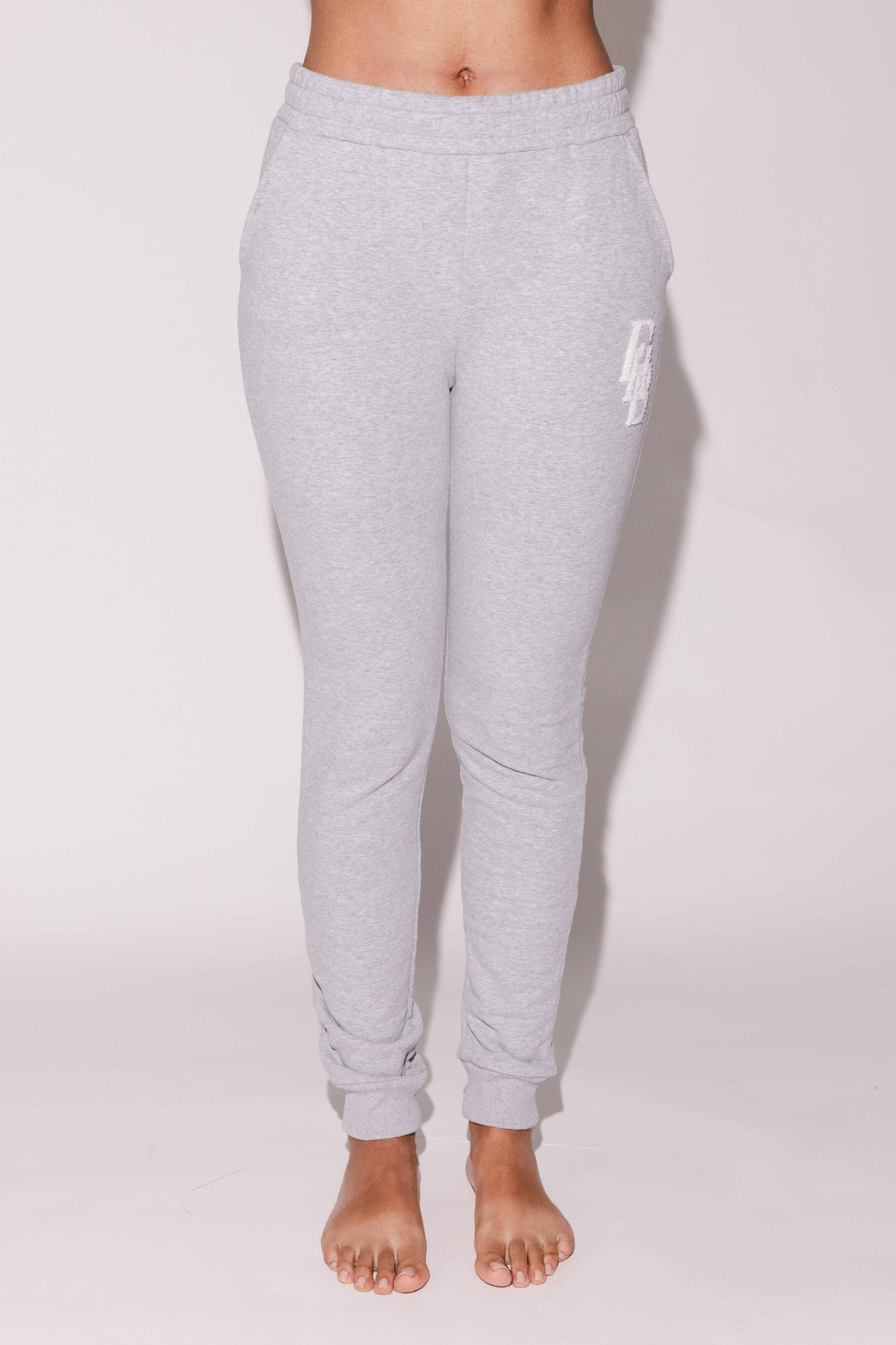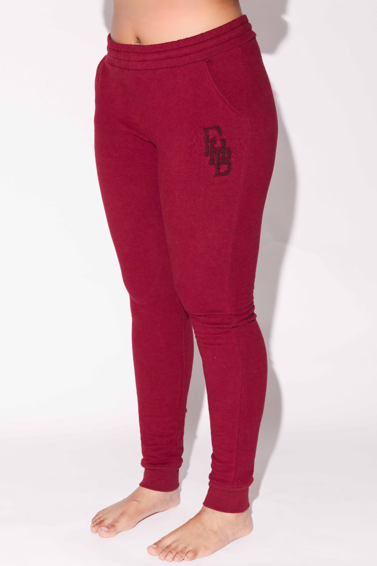 These high-waist joggers are chic yet cozy enough for everyday wear. Crafted from a heavy stretch cotton blend fabric, they feature a brushed fleece lining for extra comfort, and inverted drawstring for a more polished look. Features oversized chenille FHB logo patch for added chicness.
