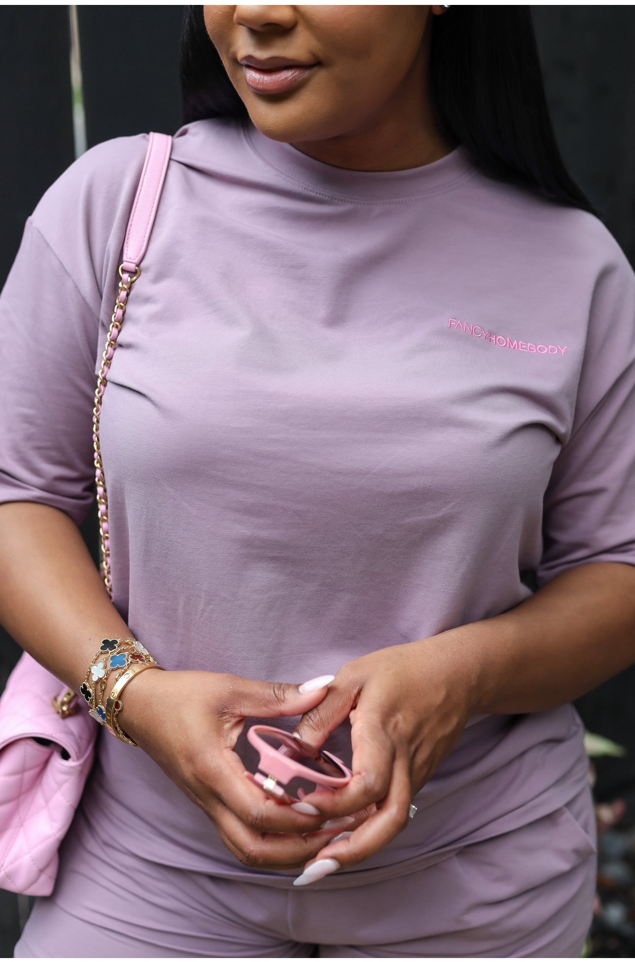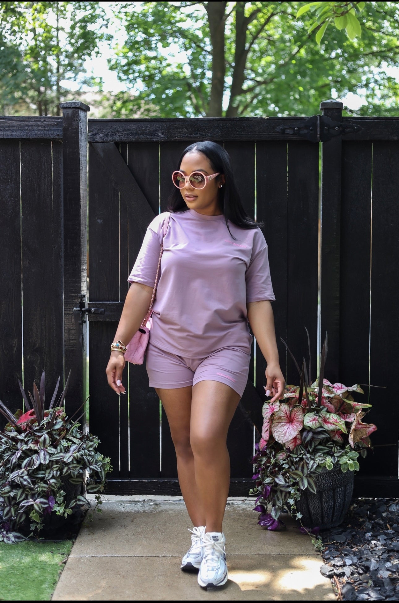 Simple, never basic! An effortless must have look for your chill wardrobe. Crafted from a luxe jersey blend, this set includes an oversized relaxed-fit tee and matching high-rise, cinched shorts with elasticized waist and convenient side pockets.