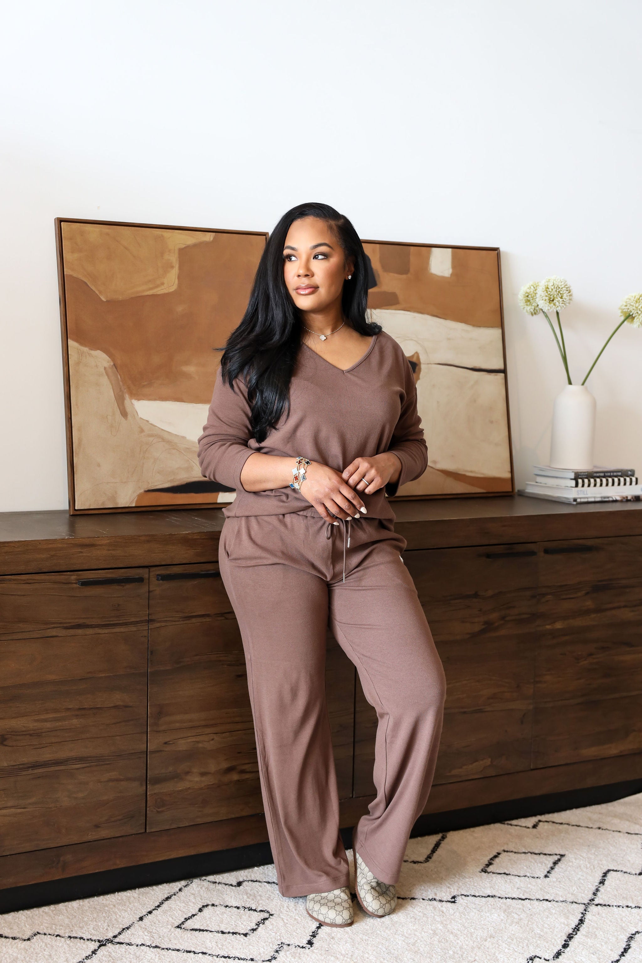 Made from an incredibly soft, and durable stretch cotton, this 2PC set features a relaxed fit long sleeve top that hits just below the natural waist and matching wide leg pant with drawstring waistband and deep side pockets. This one was meant for all day wear- so comfy, you won't want to take it off.