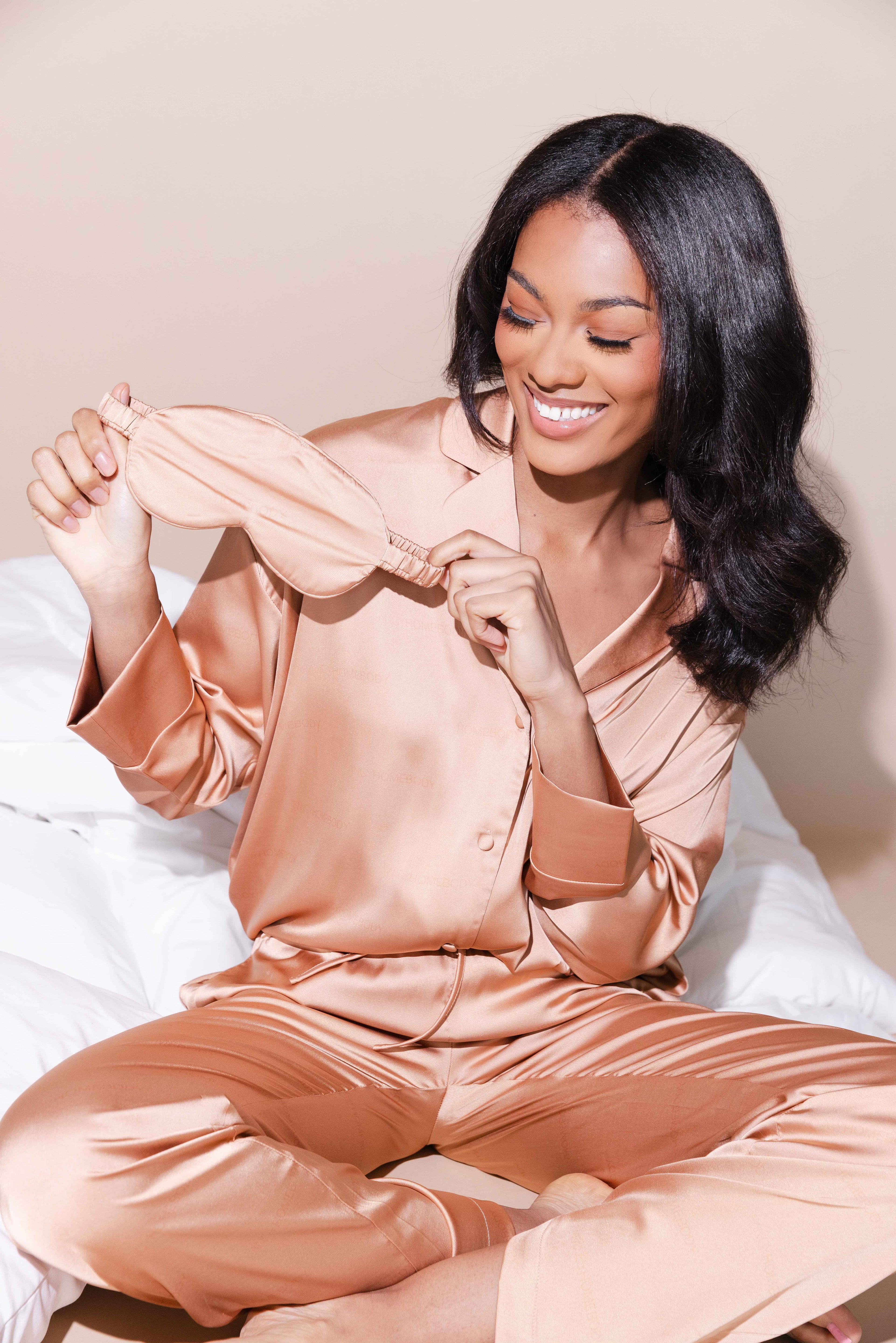 Matching eye mask with elastic band is included in each set.