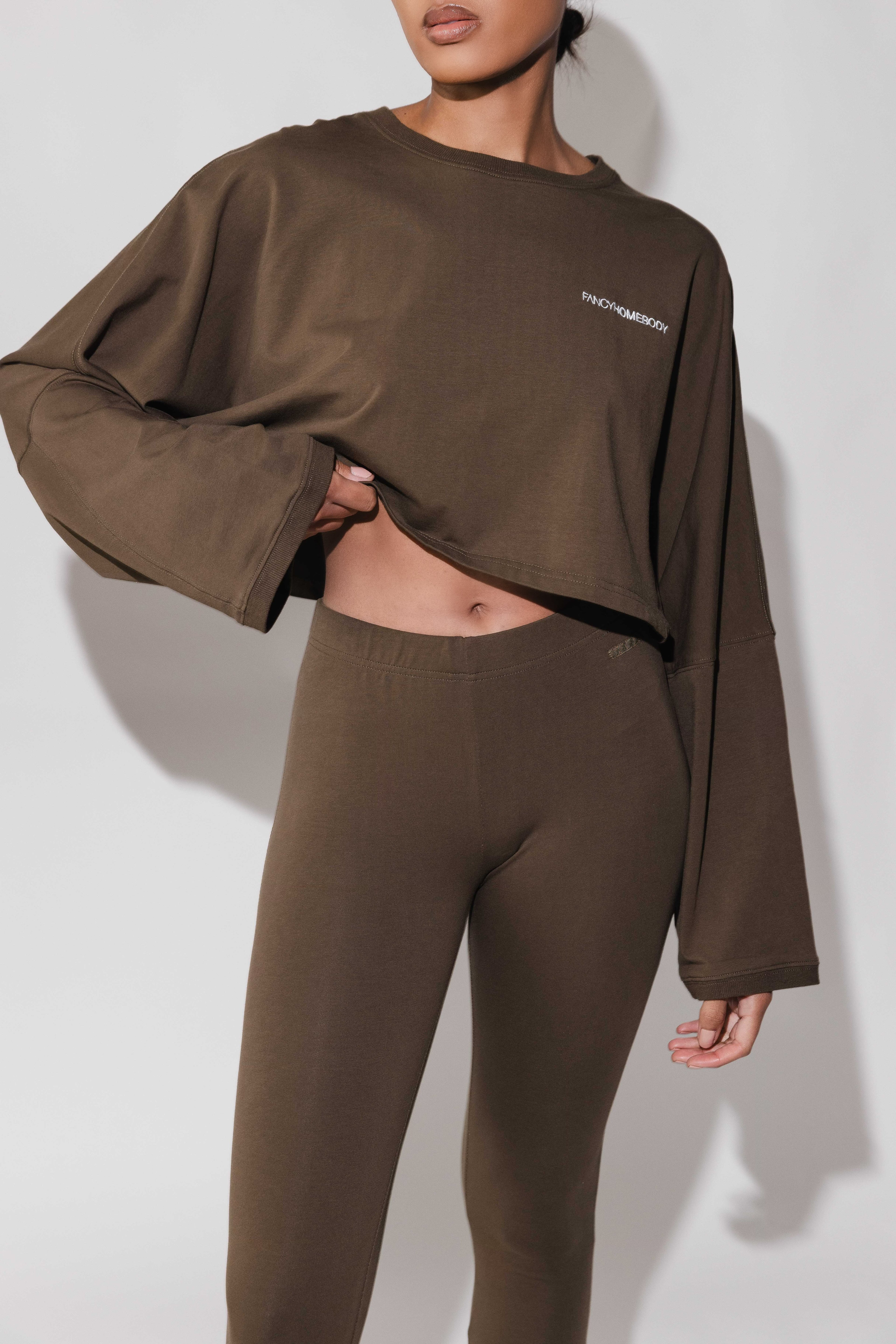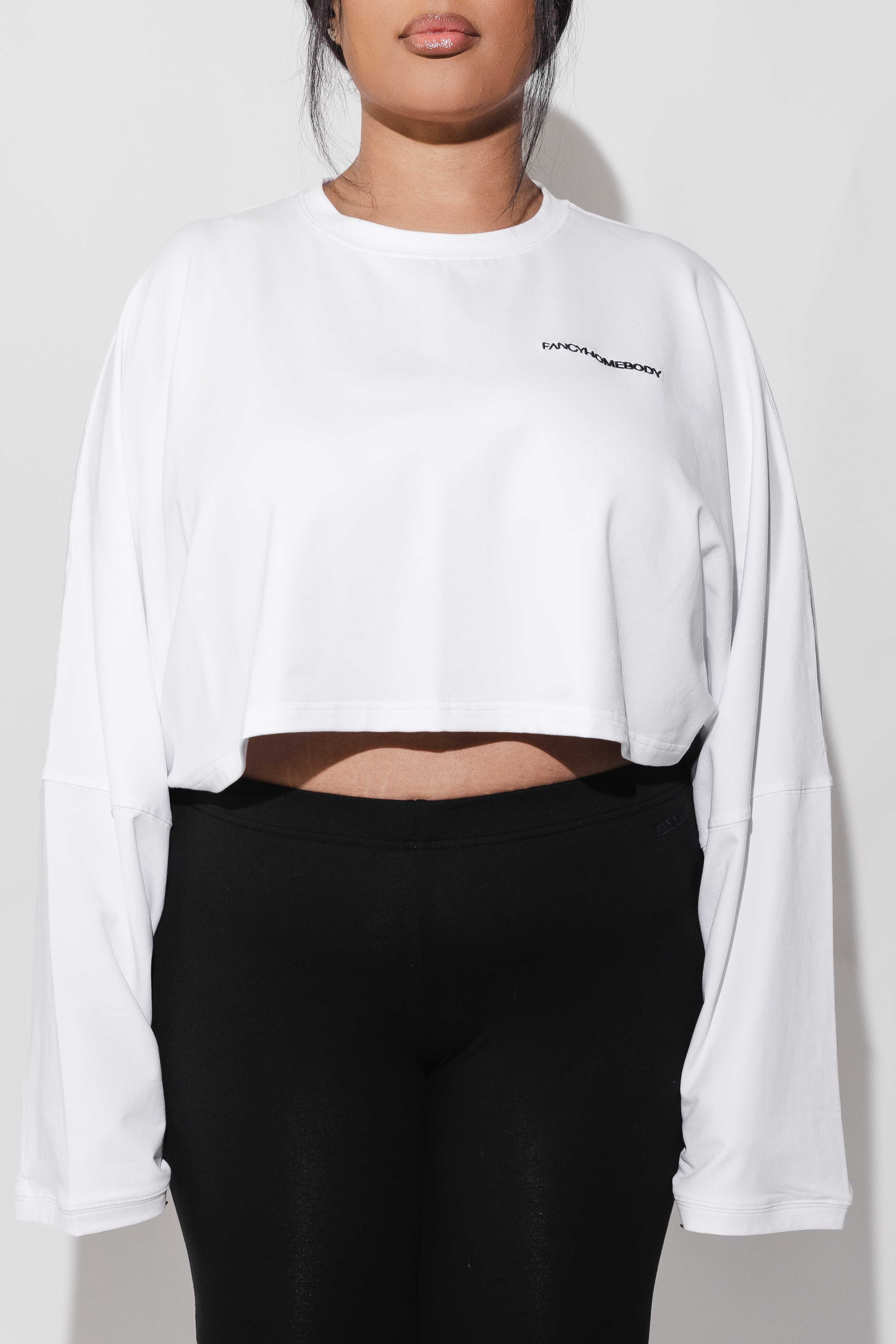 Our Jersey Essential Slouch Crop Top, made from our stretchy, breathable cotton features a crew neckline, long sleeves, dropped shoulders and a cropped hemline with a very relaxed fit.