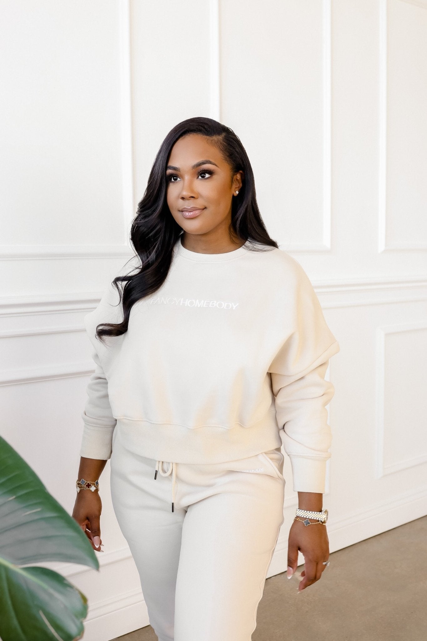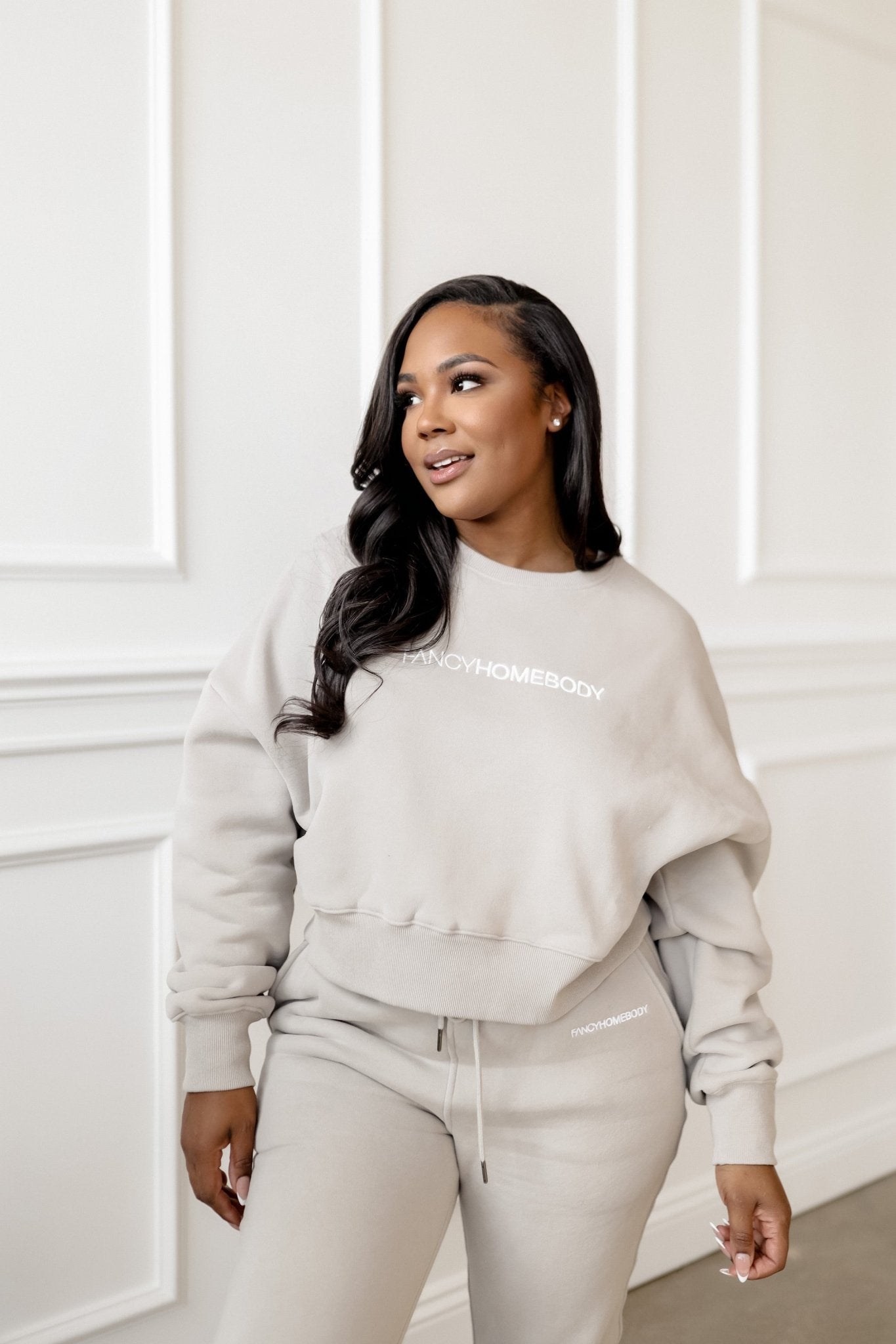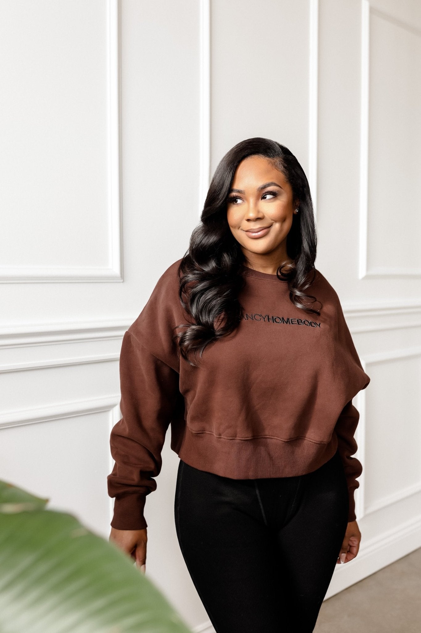 Lush. Luxe. Comfy. This long sleeve chic, crewneck sweatshirt features a slightly cropped hem and our signature puff embroidered logo