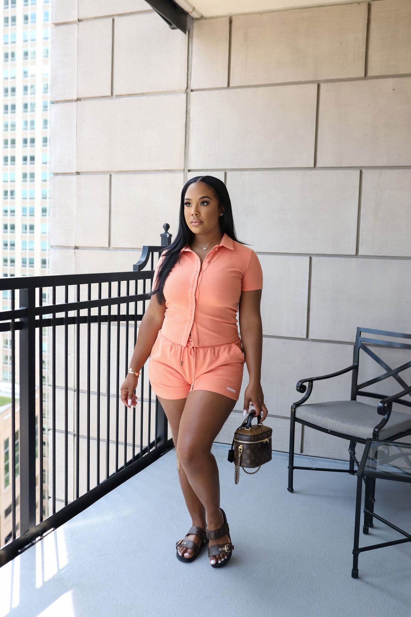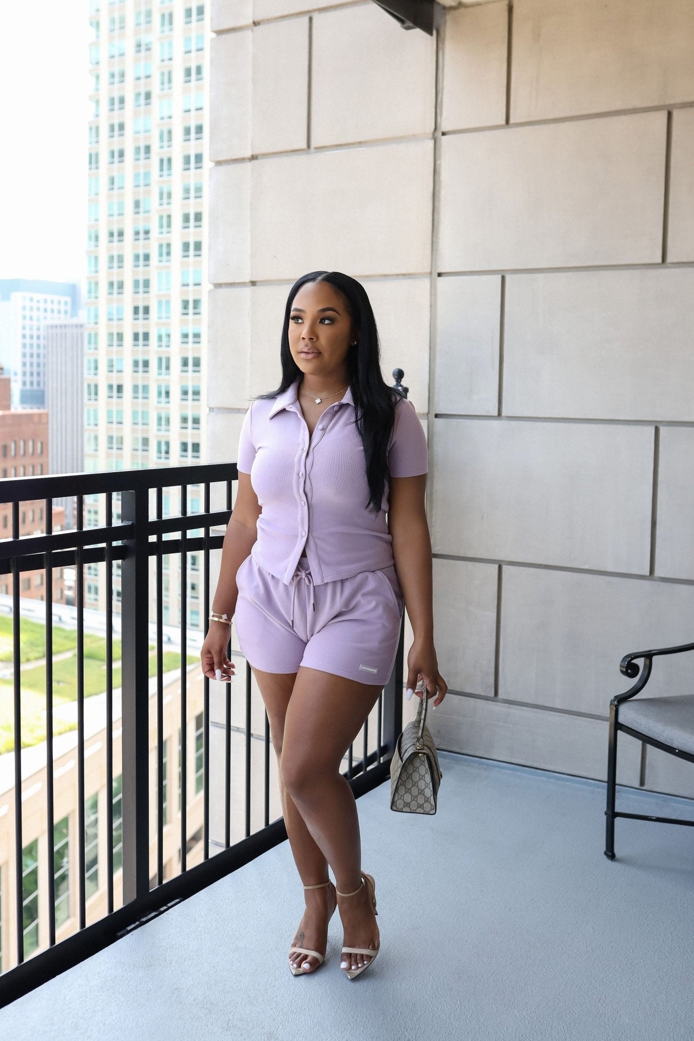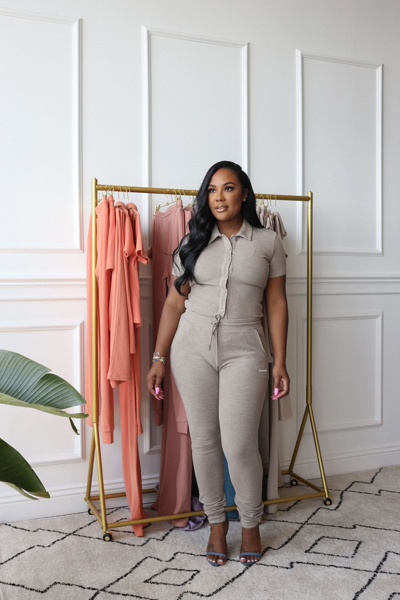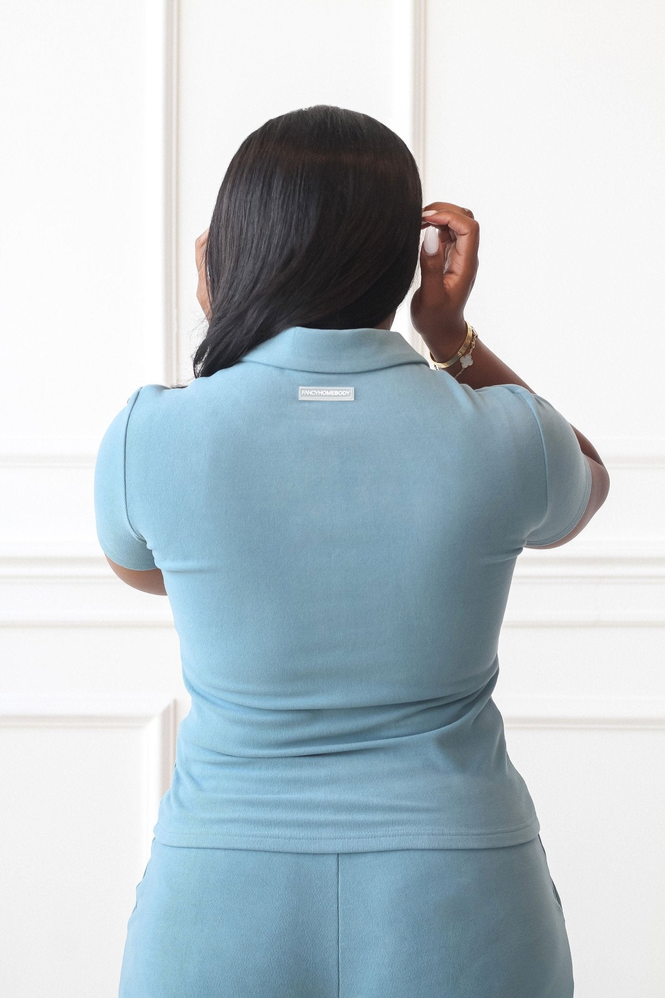 The 'All Buttoned Up' top is a classic-chic design that will never go out of style. Made from the softest, ultra luxe ribbed knit blend, this collared top features a slim fit design, short sleeves and fabric covered buttons.
