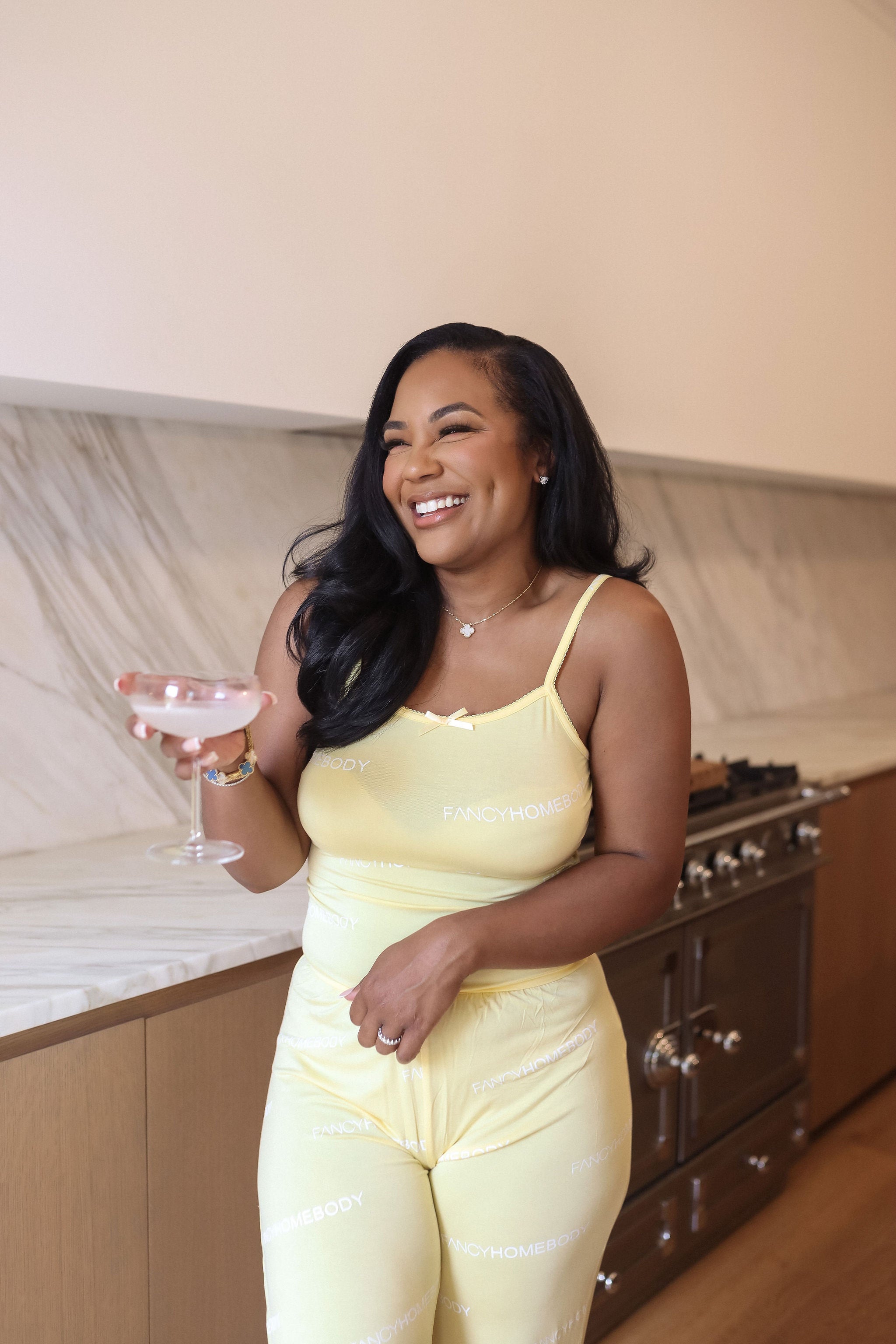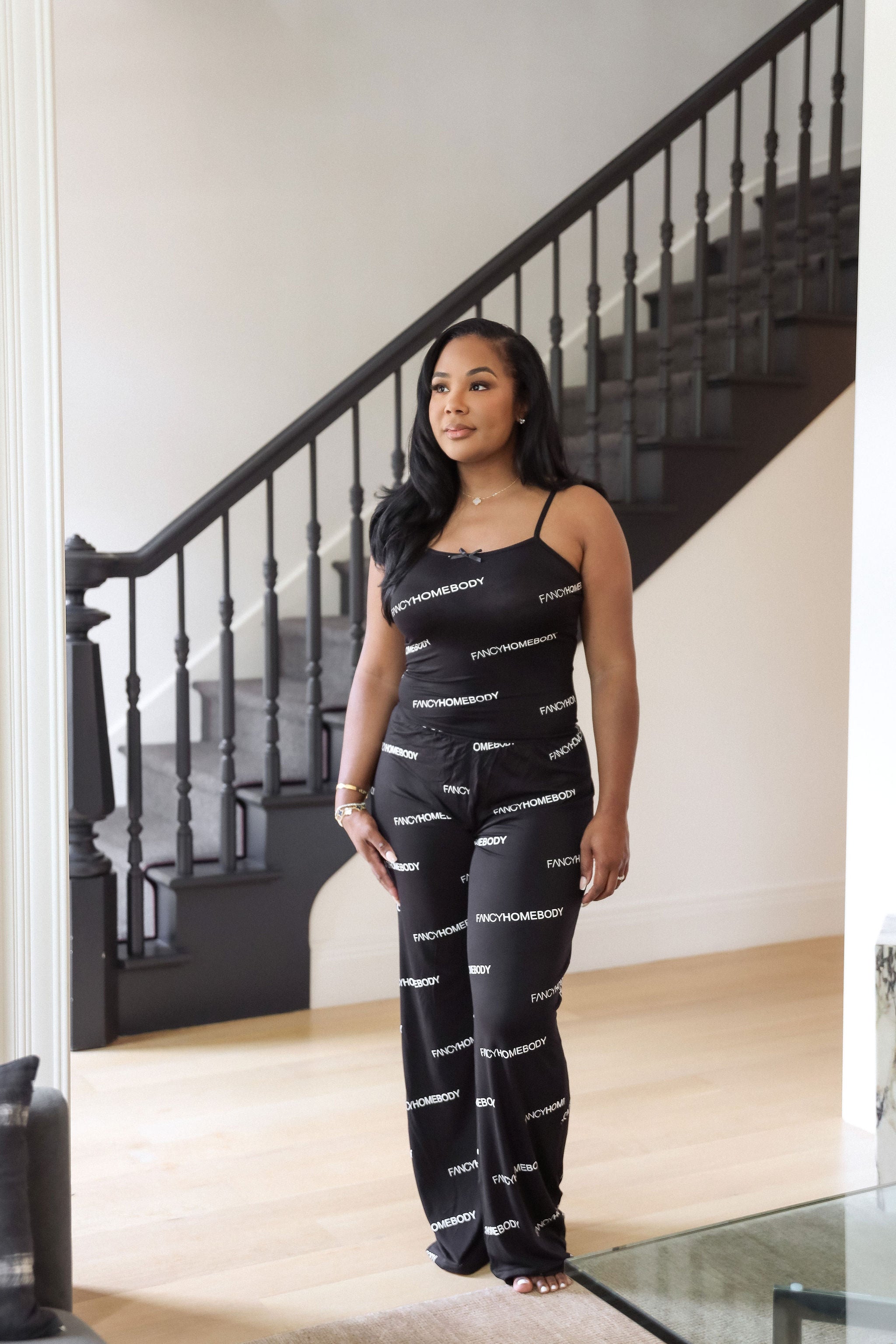 Finished with our signature FANCYHOMEBODY logo print throughout, this set delivers the perfect blend of cozy and chic — made to stay in, but stylish enough to be seen.