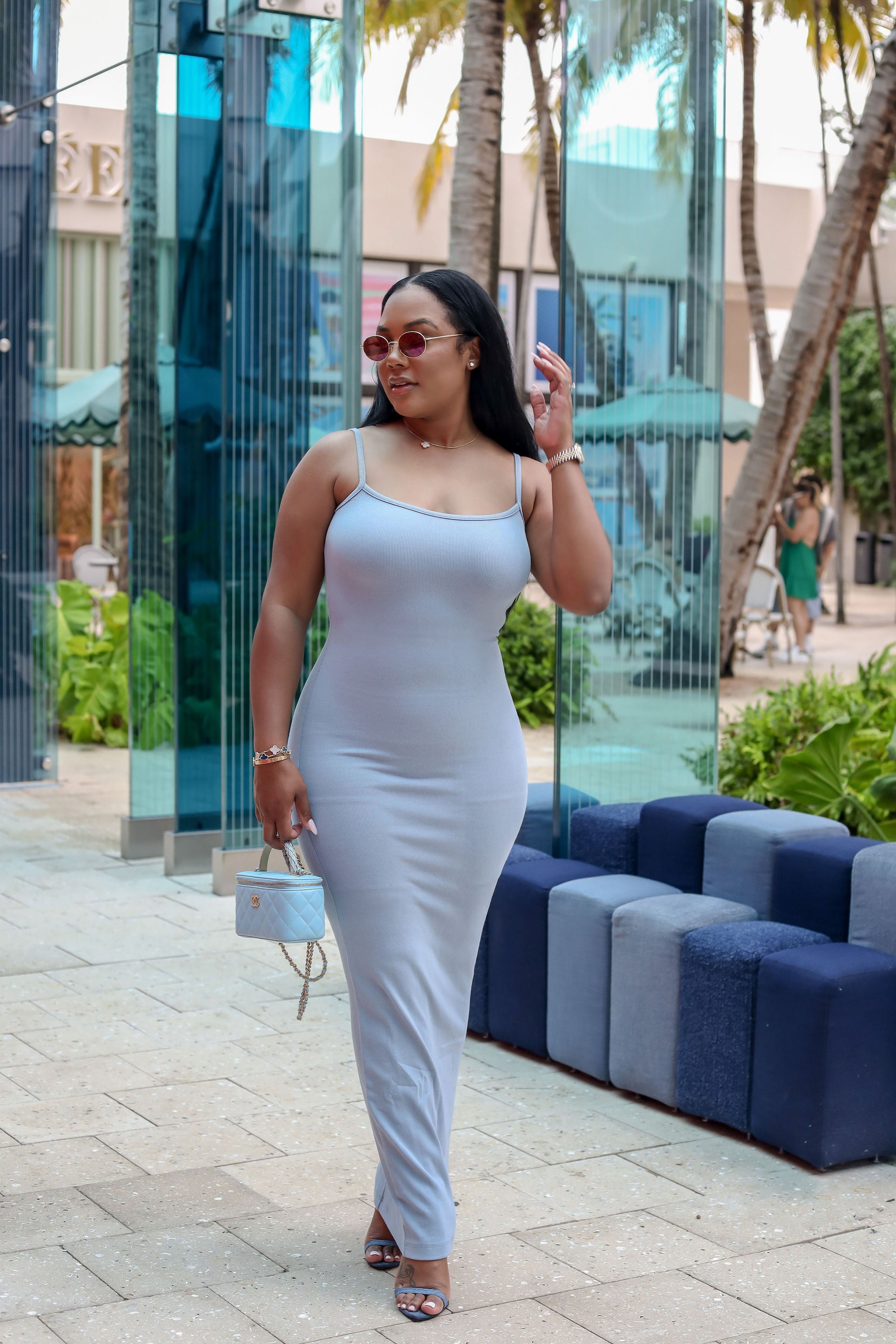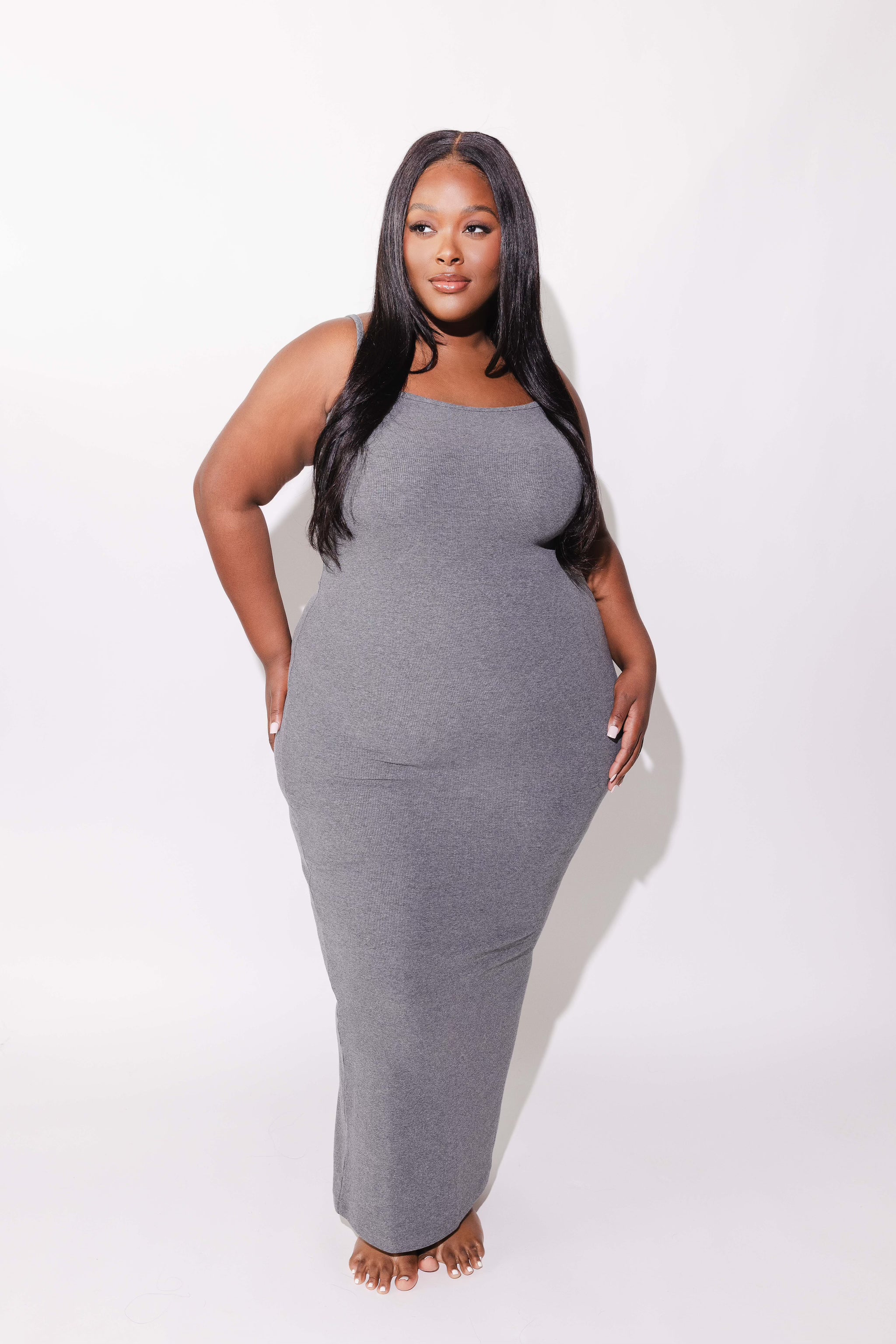 Made from our soft and stretchy Signature Ribbed fabric, this super comfortable and classic design can easily take you from lounging at home to out on the town. Features flattering straight neckline, spaghetti straps, maxi length, an ultra flattering- body hugging fit, with a slight snatch at the waist.